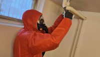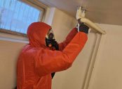 Detaljer: Vägguttag, lampknappar, ventilation och lister torkas av.